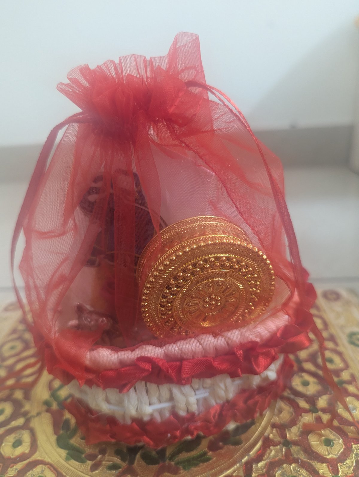 Decorative basket+Haldi kumkum bottle+gold coated storage box