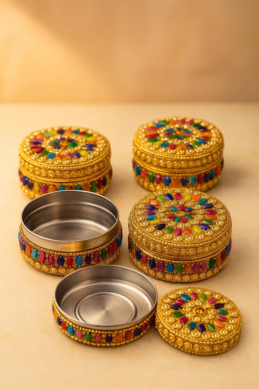 Jaipuri Craft Golden Decorative Handicraft Jewellery Decorative Box (10 cm x 10 cm x 5 cm, Gold)