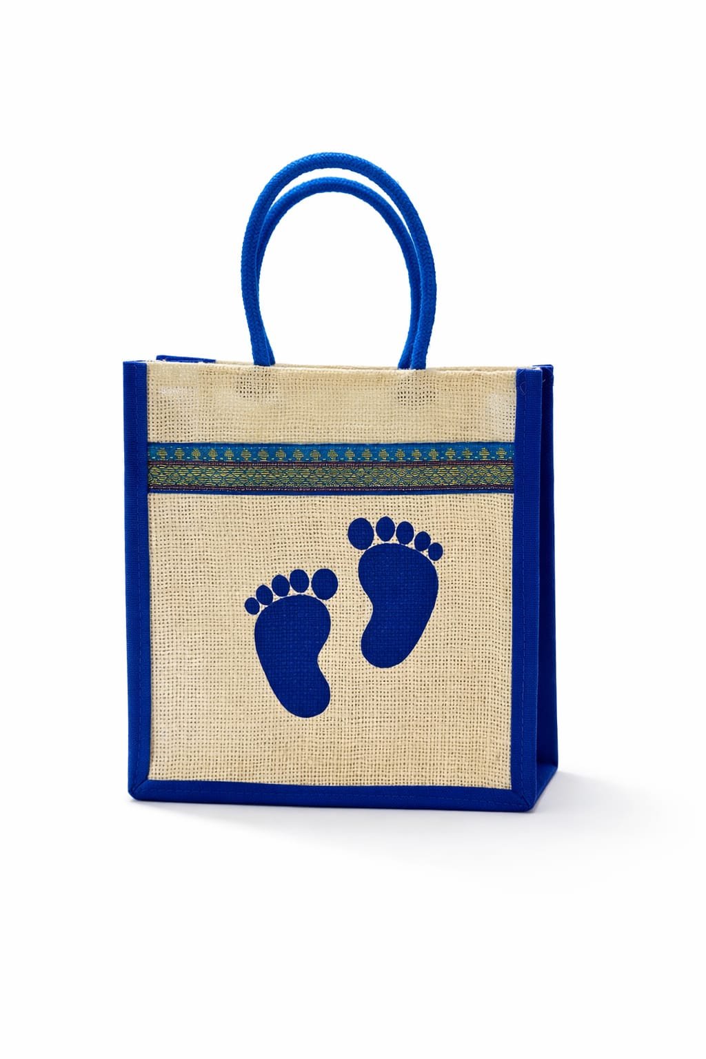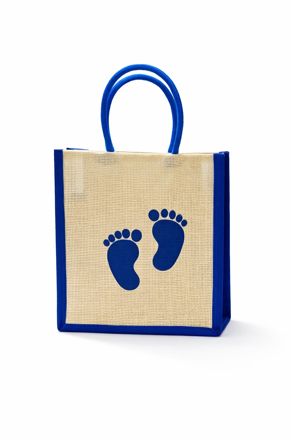 📝 Product Description Make your celebrations extra special with this elegant and eco-friendly jute return gift bag from Caddlebox. Designed with a charming baby footprint print, this bag is perfect for baby showers, naming ceremonies, and newborn celebrations. Crafted from high-quality natural jute, it is durable, reusable, and environmentally friendly—making it a thoughtful alternative to plastic gift bags. The sturdy blue handles ensure easy carrying, while the compact size is ideal for holding sweets, small gifts, or return favors. The minimal yet attractive design adds a premium touch to your gifting, making it suitable for both personal and event use. ✨ Key Features Premium quality natural jute material Reusable, eco-friendly & biodegradable Cute baby footprint design – perfect for newborn occasions Strong and comfortable blue handles Ideal for return gifts, party favors, and small hampers Lightweight yet sturdy construction 📏 Ideal For Baby Shower Return Gifts Naming Ceremony (Namkaran) Newborn Celebrations Small Gift Packaging