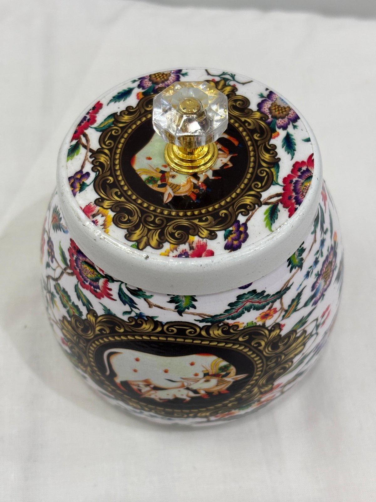 Design Magnifique Pichwai Container Jar Box Meenakari Design Return Gifts (Blue, 4 Inch, 250gm Capacity)