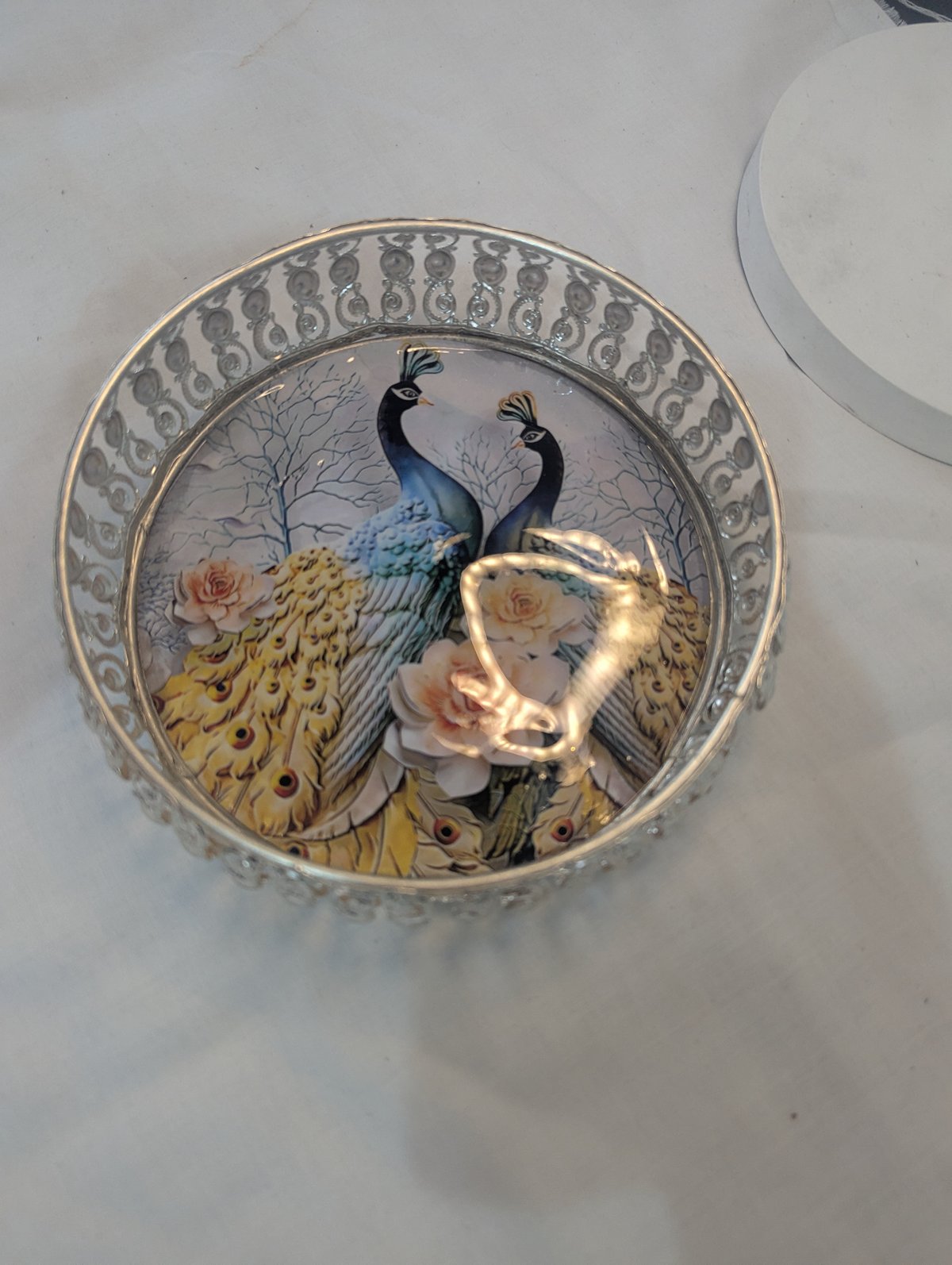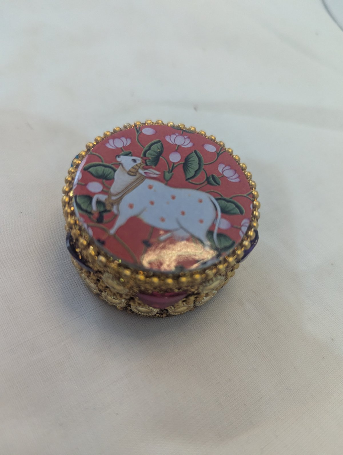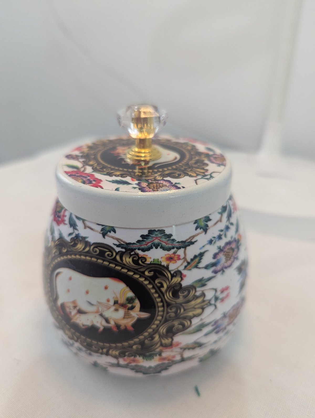 Pichwai design round tray +pichwai design jar +kumkum box+designer haldi kumkum